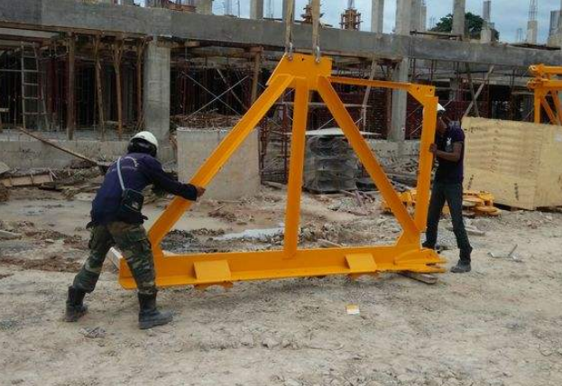 体型高大的塔吊是由很多层的钢铁支架所支撑起来的,在支架的安装过程中,由于钢材过于沉重,人为的搬动不仅费力而且保持不了平稳,工人们常常使用起重机结合吊装带将零散部件吊起,然后对其进行拼接,对于拼接好的框架再由吊装带吊往高处进行一层层的安装,最后树立起塔吊高大的身躯。